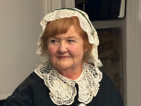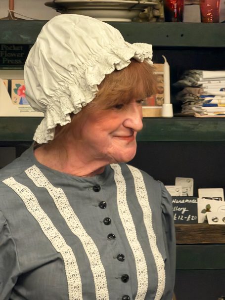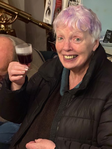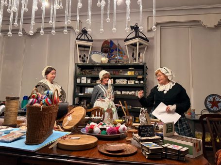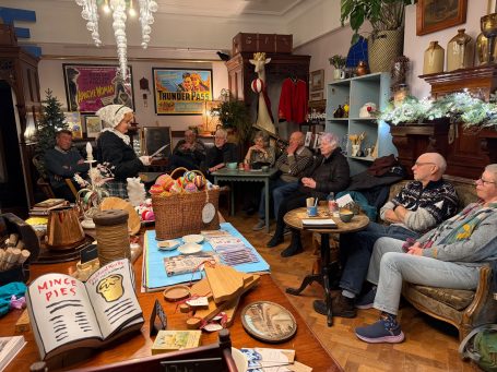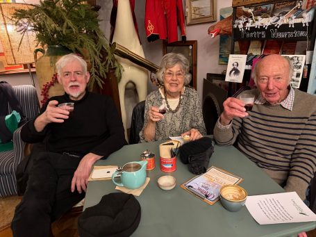 The meeting was held, appropriately, in the Havisham and Cratchit coffee shop at Bleak House. Mrs Beeton was there and had brought along her maid Hannah (a.k.a. Tessa Coulson) and there was a surprise visit from Queen Victoria (a.k.a. Louise Stubbings). Mrs Beeton told all about Smoking Bishop and how it was made and then Hannah and Queen Victoria handed out glasses of Smoking Bishop and mince pies for us all to taste.